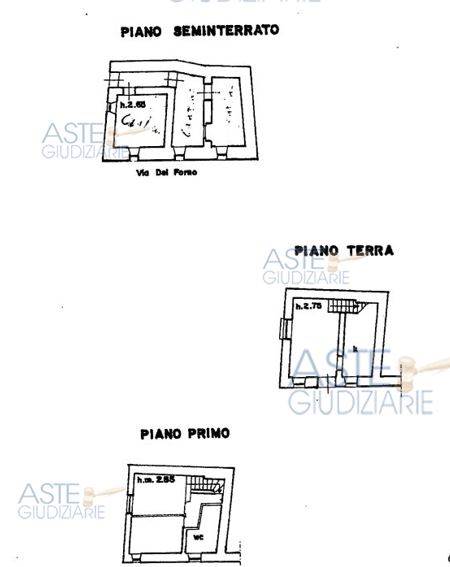 Abitazione civile su tre piani, composta da tre vani disimpegno al piano seminterrato; due vani al piano terra; due vani, disimpegno e bagno al piano primo.