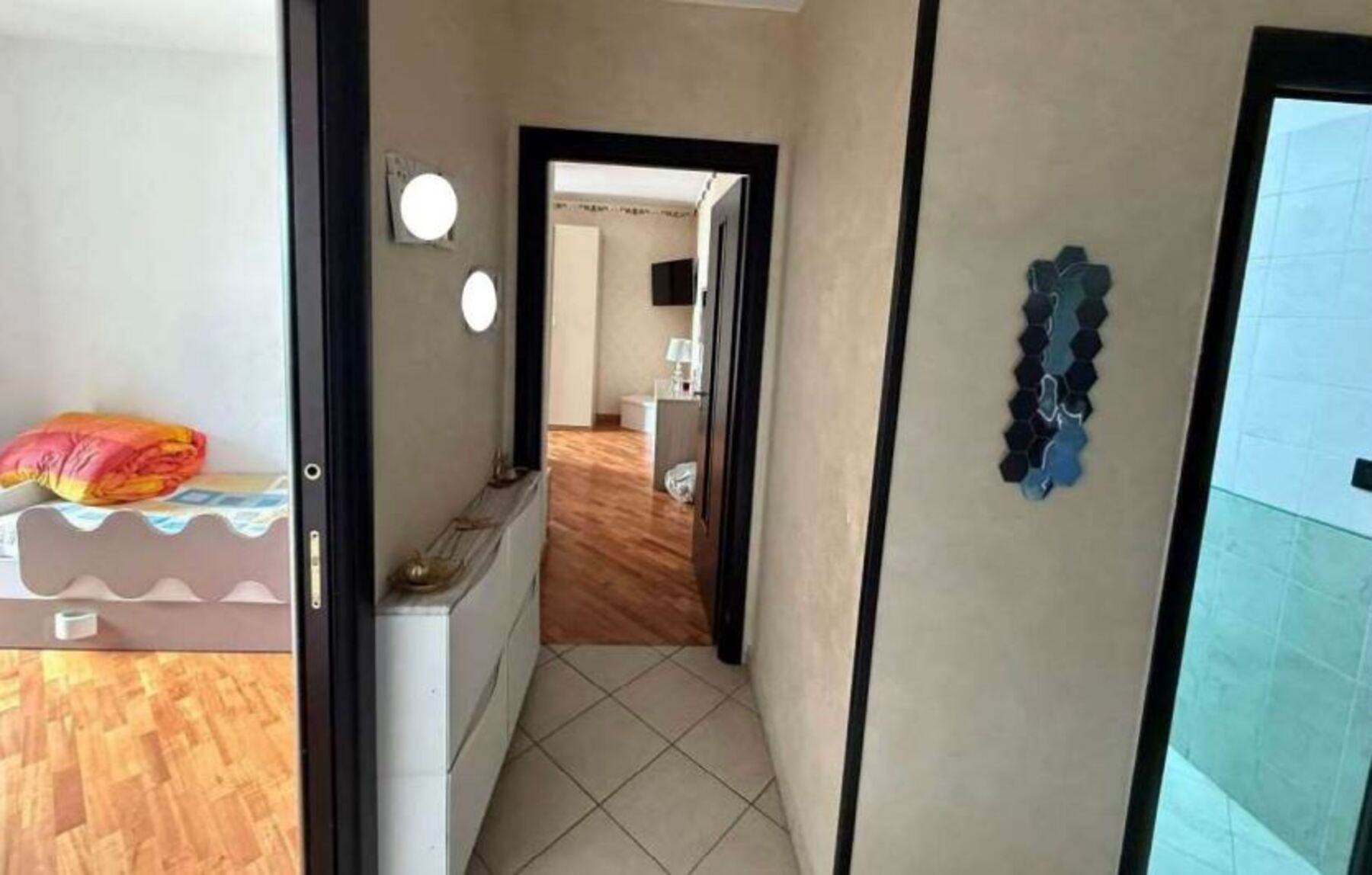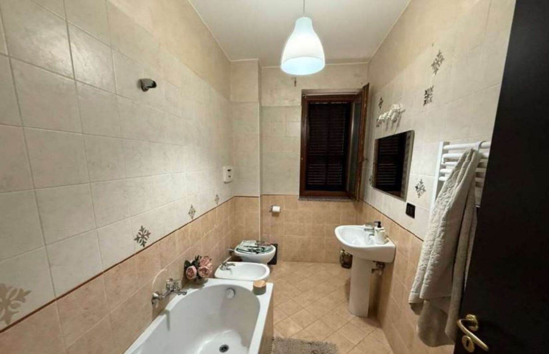 Piena ed intera proprietà di appartamento e box auto facenti parte del fabbricato ubicato in Orta di Atella (CE) alla via F. Coppi n.1.L’appartamento è posto al primo piano della scala C ed è composto da soggiorno-pranzo, cucina, disimpegno, due bagni e tre camere da letto.Il box auto si trova al piano seminterrato.