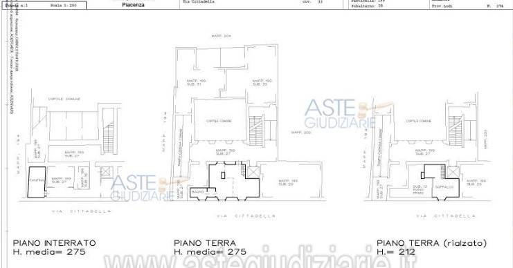 Abitazione di tipo civile, ubicata in antico palazzo pluripiano con facciata adattata a stili neoclassici, in Via Cittadella 33, nel quartiere Piazza Cavalli, cuore della città storica dove sorge anche palazzo Farnese, composta da 1 vano più accessori ed in particolare da soggiorno-cucina, bagno al piano terra e camera da letto sul soppalco, oltre a cantina al piano interrato I locali ad uso abitativo hanno altezza massima paria a 4,25 m, la cantina ha altezza massima paria 2,75 m.