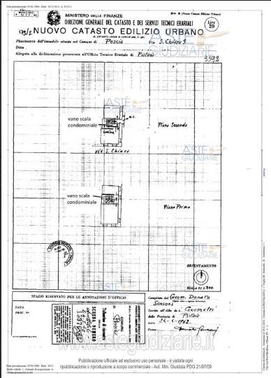 Appartamento civile abitazione ubicato in Pescia (PT), Via Santa Chiara n. 9 che si sviluppa ai piani primo e secondo di un più ampio fabbricato condominiale e vi si accede da corridoio e vano scala comuni. L'immobile è composto da due camere al piano primo; cucina, camera e bagno a piano secondo. Fa parte dell'unità immobiliare un ripostiglio posto al piano terra dell'edificio.