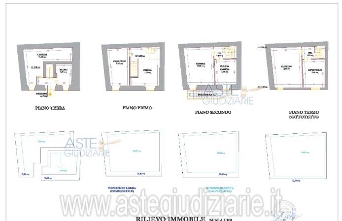 Piena e perfetta proprietà per una quota pari all’intero del fabbricato di tipo rurale della superficie complessiva di mq 96,69 circa, composto di: ingresso con la scala interna, cantina e bagno al piano terra; soggiorno, cucina e scala di collegamento al piano primo; due camere al piano secondo; due locali pluriuso al piano terzo (sottotetto).