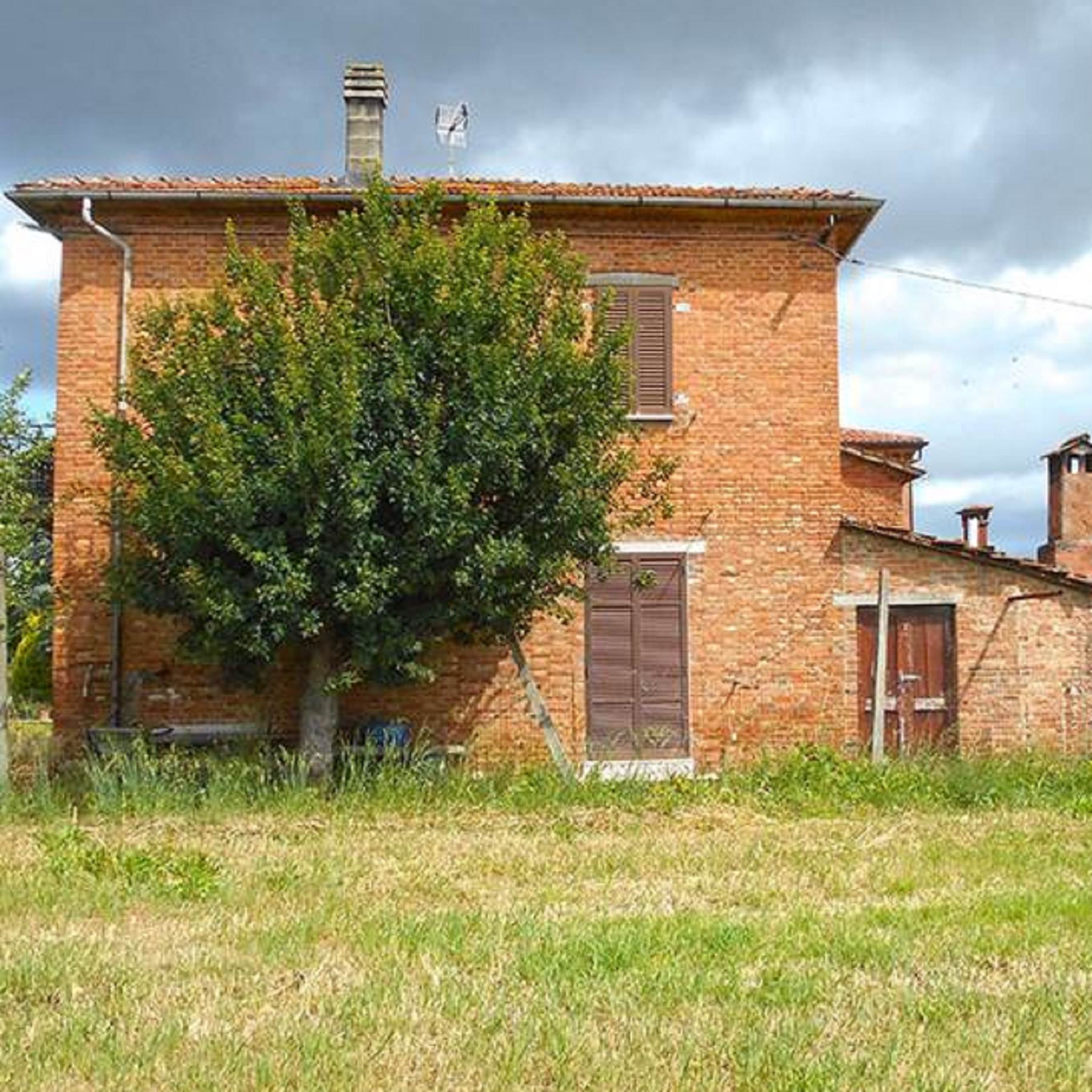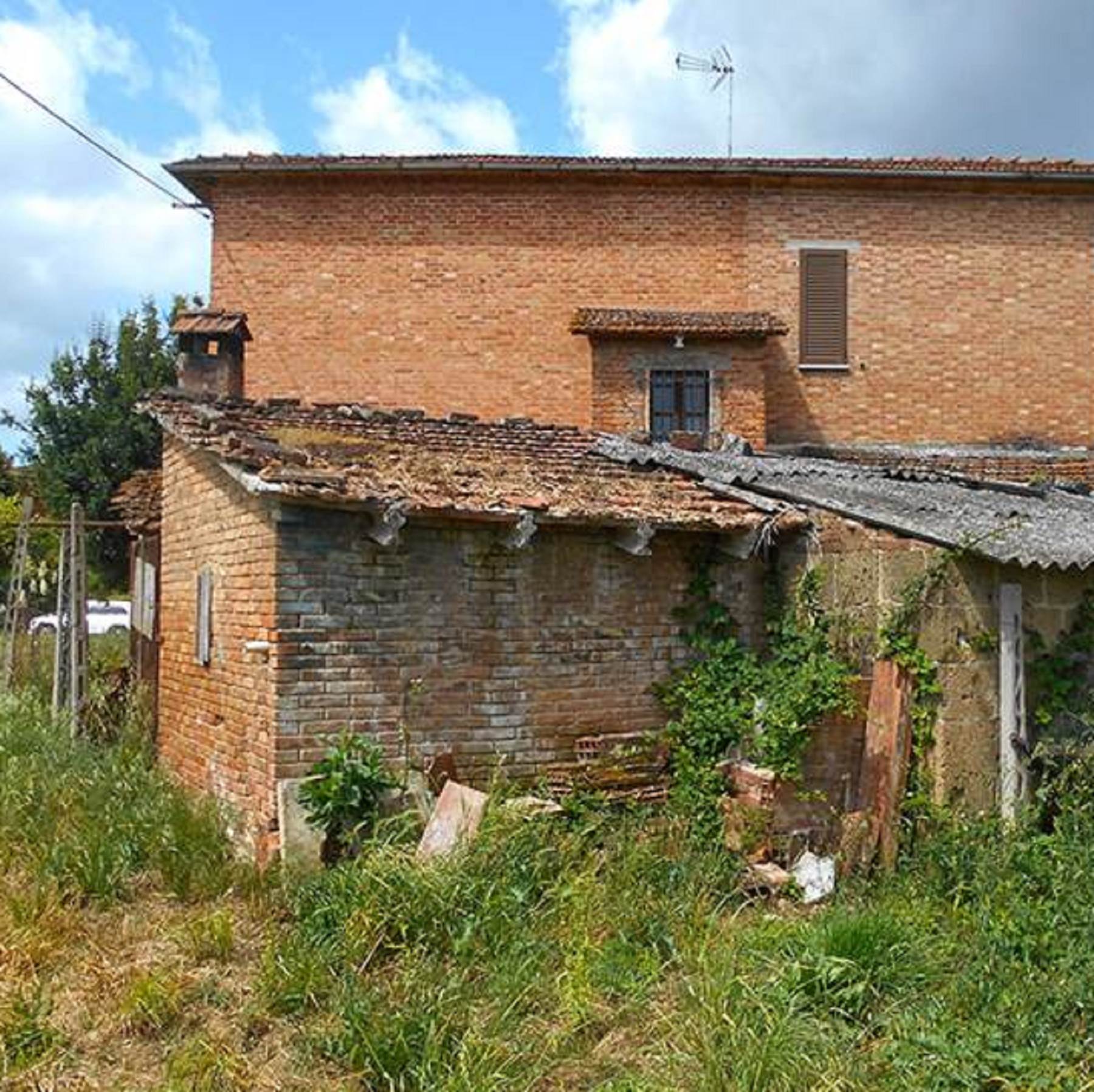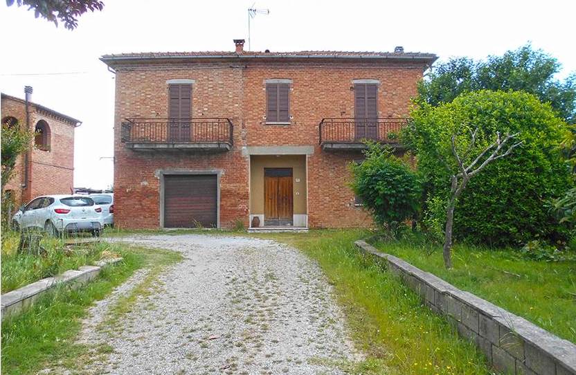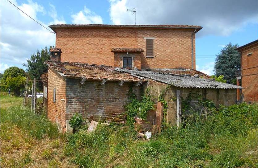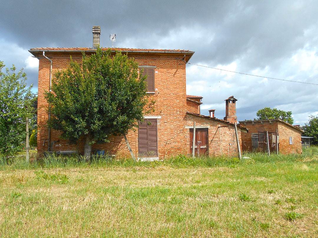 Lotto Unico: diritto di piena proprietà per la quota di 1/1 su edificio da cielo a terra che ospita abitazione, cantina, autorimessa e tre magazzini, tre edifici adibiti a magazzino, una corte esclusiva e terreni siti nel Comune di Torrita di Siena, Località Guardavalle n. 121 e Località Pantanelli di Sotto; il tutto censito al catasto fabbricati del Comune di Torrita di Siena al:- Foglio 19, particella 138 subalterno 2 (A/2, classe 2, vani 8,5, sup. mq 204, rendita euro 812,13, Località Guardavalle n. 121, piano T-1); - Foglio 19 particella 138 subalterno 3 (C/6, classe 1, consistenza mq 16, sup. mq 20, rendita euro 51,23), Località Guardavalle n. 121, piano T; - Foglio 19, particella 138 subalterno 4 (C/2, classe 1, consistenza mq 42, sup. mq 50, rendita euro 91,10), Località Guardavalle n. 121, piano T; - Foglio 19, particella 542 (C/2, classe 1, consistenza mq 115, sup. mq 121, rendita euro 249,45), Località Guardavalle, piano T; - Foglio 19, particella 543 (C/2, classe 1, consistenza mq 40, sup. mq. 42, rendita euro 86,76, Località Guardavalle, piano T);- Foglio 19, particella 138 Sub 1 (corte esclusiva). Per quanto riguarda i terreni, i medesimi sono censiti al Catasto Terreni del ridetto Comune al:- Foglio 19, particella 576 (seminativo arboreo, cl. 3, mq 7.136,00 R.D. euro 20,27, R.A. euro 16,58;- Foglio 21 particella 100 (prato, cl 2, mq 130, RD euro 0,20, R.A. euro 0,10);- Foglio 21, particella 105 (seminativo, cl 2, mq 960, RD euro 4,96, R.A. euro 3,47).L’appartamento è fornito di ingresso indipendente e si sviluppa al piano terra e al primo piano. Al piano terreno vi è un portico di accesso, ingresso, cucina, soggiorno, ripostiglio sottoscala e vano scale, al piano ammezzato un bagno e al primo piano due disimpegni, cinque camere, un bagno e due balconi.Dal punto di vista edilizio e urbanistico il fabbricato, comprensivo dell’appartamento, della cantina, dell’autorimessa e dei tre magazzini, è stato edificato in data anteriore al 01.09.1967 e non sono stati reperiti da parte del CTU titoli abilitativi relativi alla sua costruzione presso i competenti uffici comunali.