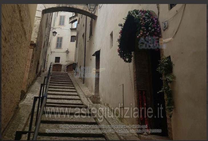 Diritti di piena proprietà su un fabbricato ad uso locale commerciale di circa 47 mq. sito nel centro storico di Spoleto in Via dello Sdrucciolo. Il locale è piccolo ma molto caratteristico, con il soffitto a volta e pietra a facciavista, è ben rifinito e completo di impianto per il ricambio d'aria poiché scarso di aperture. L'immobile pignorato ed oggetto di esecuzione non è in condominio. Sull'immobile pignorato ed oggetto di esecuzione non è presente nessun vincolo demaniale. L'immobile è conforme all'ultimo titolo abilitativo assentito. Agli atti non è stata trovata la certificazione di agibilità relativa agli ultimi titoli. L’immobile al momento del sopralluogo e secondo quanto riferito dall’esecutato risulta essere libero.