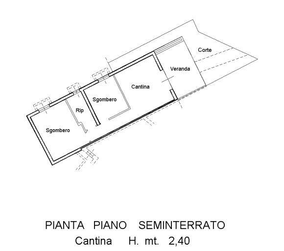 locale cantina composto da un ambiente di mq 15,72 adibito a soggiorno, da due locali di sgombero di mq 9,04 e mq 15,53 adibiti a camera , di bagno di mq 4,33 e di disimpegno di mq 4.40 per complessivi mq 49,02 oltre ad una veranda coperta di mq 11,53 e cortile di pertinenza di mq 30