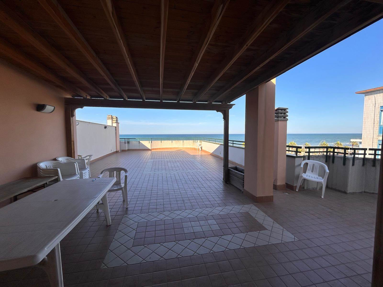 diritti pari alla piena proprietà 1/1 di un appartamento ad uso civile abitazione , .all’interno di un edificio plurifamiliare e commerciale esistente in prima fila mare a Tortoreto lido (TE) - Lungomare Sirena-Piazza Caduti di Nassiriya n.10, scala A, interno 55, piano 4 composto da ingresso su soggiorno-cucina, n. 2 bagni, disimpegno e n. 2 camere con ampio terrazzo e balcone a livello